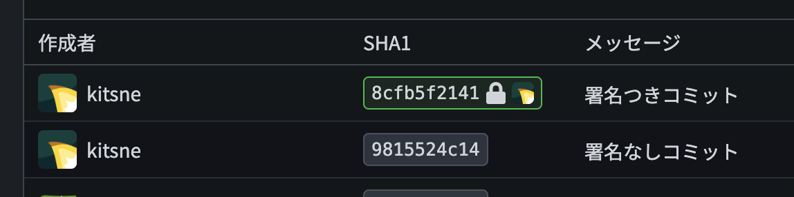 git config --global user.signingkey ~/.ssh/id_ed25519.pub以上の手順によって、Gitea 上でコミットに署名できるようになります。